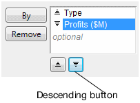 5. To change Profits ($M) to sort in descending order, select Profits ($M) and click the descending button.