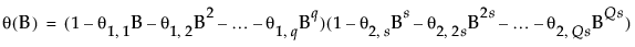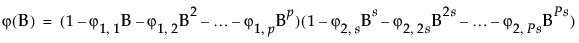 where s is the number of observations per period. The first index on the coefficients is the factor number (1 indicates nonseasonal, 2 indicates seasonal) and the second is the lag of the term.