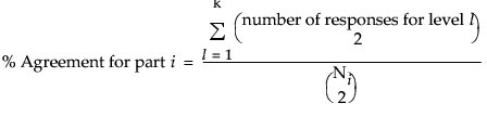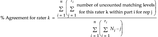 • Ni = m x ri. Number of ratings on part i (i = 1,...,n). This includes responses for all raters, and repeat ratings on a part. For example, if part i is measured 3 times by each of 3 raters, then Ni is 3 x 3 = 9.