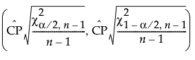The 100(1 - α)% confidence interval for Cp is calculated as follows: