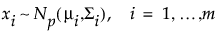 Denote a multivariate distribution of dimension p with mean vector μi and covariance matrix Σi by Np(μi,Σi). Suppose that the xi are m (where m > p) independent observations from such a distribution: