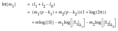 Denote the maximum of twice the log-likelihood function for the subsequent m2 = m - m1 observations by l2, and the maximum of twice the log-likelihood function for all m observations by l0. Both l2 and l0 are given by expressions similar to that given for l1.