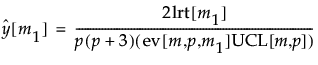 The control chart statistic is defined to be twice the log of the likelihood ratio test statistic divided by p(p + 3), divided by its approximate expected value, and also divided by the approximate value of the control limit. Because of the division by the approximate value of the UCL, the control chart statistic can be plotted against an upper control limit of 1. The approximate control chart statistic is given as follows: