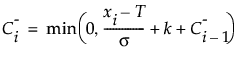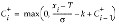 This section defines the statistics that are used in the construction of the CUSUM Chart. Some of these statistics are also saved in the data table that is created by the Save Summaries command.