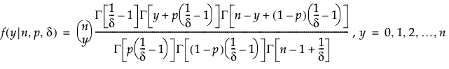 The distributions fit by the Generalized Regression personality are given below in terms of the parameters used in model fitting. Although it is not specifically stated as part of their descriptions, the Generalized Regression personality enables you to specify non-integer values for the discrete distributions.