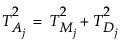 of the jth subgroup and the target value. (T2M is equivalent to T2 in the previous sections for observations in rational subgroups.) You can also calculate T2 statistics related to the internal variability in each subgroup and the overall variability around the target value. The components of the T2 statistic are additive, much like sums of squares. Specifically, the following relationship is true for each of the m subgroups:
