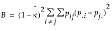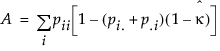 • xij = number of ratings on part i (i = 1, 2,...,n) into level j (j=1, 2,...,k)The individual category Kappa is as follows: