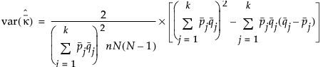 Estimate the asymptotic variance of the simple Kappa coefficient with the following equation: