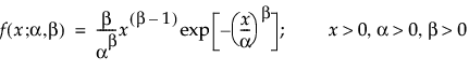 where α is a scale parameter, and β is a shape parameter. The Weibull distribution reduces to an exponential distribution when β = 1.
