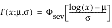 With these parameters, the pdf and the cdf of the Weibull distribution are expressed as a log-transformed smallest extreme value distribution (SEV) using a location-scale parameterization with μ = log(α) and σ = 1/β: