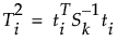The value for each of the i observations is plotted on the T2 control chart. For historical and current data, the T2 values for a PCA or PLS model with k components are defined as:
