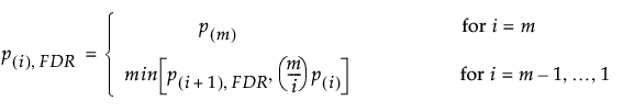The p-values adjusted for the false discovery rate, denoted p(i), FDR, are computed as follows: