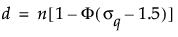 where Φ() is the standard normal cumulative distribution function and Z1-d/n is the (1 - d/n)th quantile from the standard normal distribution.