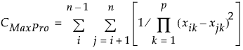 The final design points are obtained by optimizing the MaxPro (maximum projection) criterion over the existing and additional runs. For p factors and n equal to the number of existing and additional runs, the MaxPro criterion strives to find points in the clusters that minimize the following criterion: