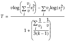 and ni is the count on the ith level and si2 is the response sample variance on the ith level. The Bartlett statistic has a χ2-distribution. Dividing the Chi-square test statistic by the degrees of freedom results in the reported F value.