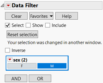 7. In the Data Filter control panel, select all of the males by clicking on the M block.