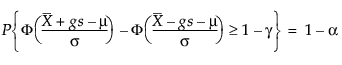 To determine g, consider the fraction of the population captured by the tolerance interval. Tamhane and Dunlop (2000) give this fraction as follows: