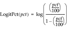 Logit Percent | Calculates the logit as a percent for the selected column (where pct is a percent in the range of 0 to 100):