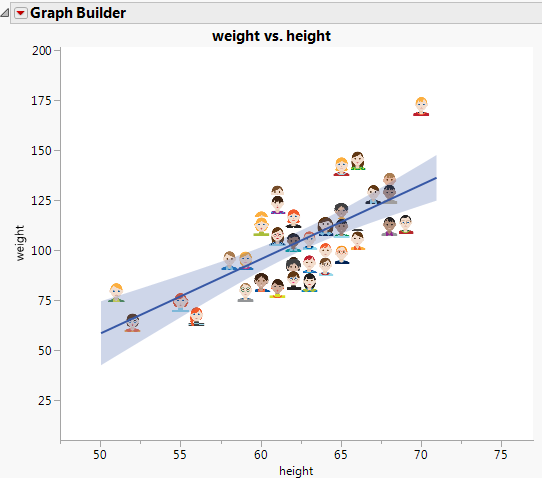 • In the Big Class Families.jmp sample data table, the picture column used for markers on graphs.