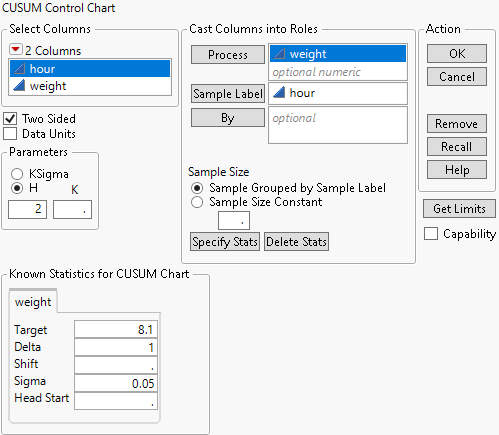 2. Select Analyze > Quality And Process > Control Chart > CUSUM.