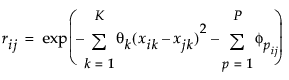 The saved variance formula uses the previously defined parameterization of R, except when the model includes categorical predictors. When the Gaussian Process model includes categorical predictors, the saved variance formula uses the following parameterization of R: