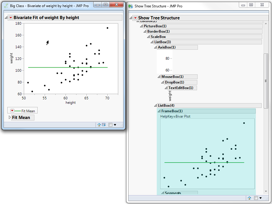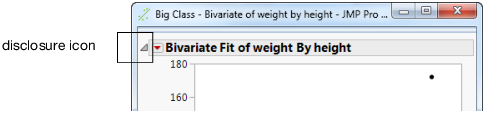 The newer JMP tree structure provides a flat view of the display box tree rather than an outline view. To view the classic structure, hold down the Shift key before you right-click the disclosure icon and then select Edit > Show Tree Structure. Note the following differences between the newer and classic tree structure views: