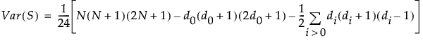 Under the null hypothesis, the mean of S is zero. The variance of S is given by the following: