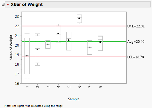 6. Right-click in the XBar of Weight plot and select Chart Options > Box Plots.