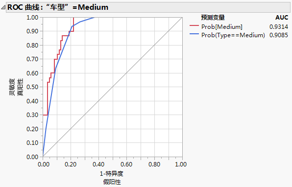 显示了针对每个车型的“AUC 比较”报表,Figure 10.10显示了其中一个报表。