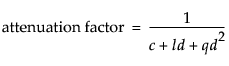 where c = CONSTANT_ATTENUATION, l = LINEAR_ATTENUATION, and q = QUADRATIC_ATTENUATION.