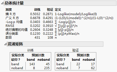 由于响应纹印?是分类响应,提升树分析在“测度”下提供“误分类率”并提供一个“混淆矩阵”报表。验证集的误分类率为 0.2222,或约为 22%。