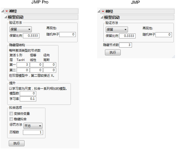 注意:JMP 的标准版本仅使用 TanH 激活函数,只能拟合包含一个隐藏层的神经网络。