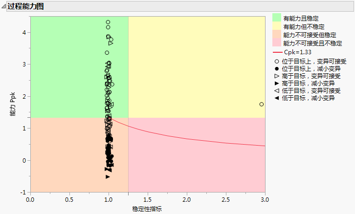 使用“过程筛选”平台探索一段时间上的大量过程。该平台计算过程稳定性和过程能力指标。该平台创建控制图并检测大的过程偏移。该平台旨在通过快速聚焦不稳定、不满足规格限或发生均值偏移的过程让您加快对大量过程的评估。