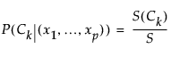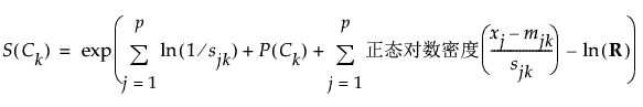 给定类 Ck, S(Ck) 的朴素得分公式是 P(Ck|(x1,..., xp)) 的表达式中分子的变化形式,该公式计算如下: