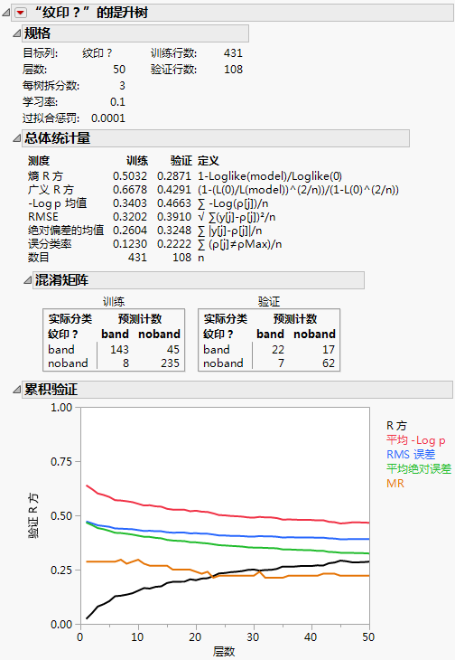 在“梯度提升树规格”窗口中点击“确定”后,“提升树”报表随即打开。
