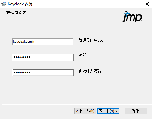 注意:确保您先安装了 JMP Live 数据库,然后安装 Keycloak,并且在安装 Keycloak 之后安装 JMP Live。