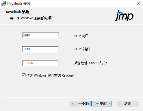 HTTP 端口:输入 HTTP 网络端口。默认端口为 8888。该端口需要向 Keycloak 服务器开放。