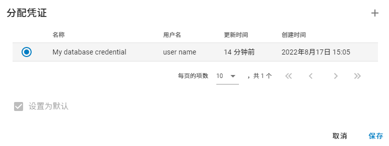 为凭证添加标识名称,并且为数据库添加用户 ID 和密码。详细信息,请参见分配凭证。