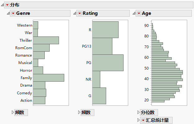 基于该数据创建报表。该示例为若干变量创建“分布”报表。
