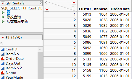 使用“查询生成器”将数据从数据库导入到 JMP 数据表中。详细信息,请参见《使用 JMP》手册中构建 SQL 查询的小节。