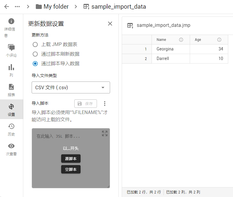 用户可以将不是 JMP 格式的数据上载至 JMP Live,它会转换为 JMP 数据表。