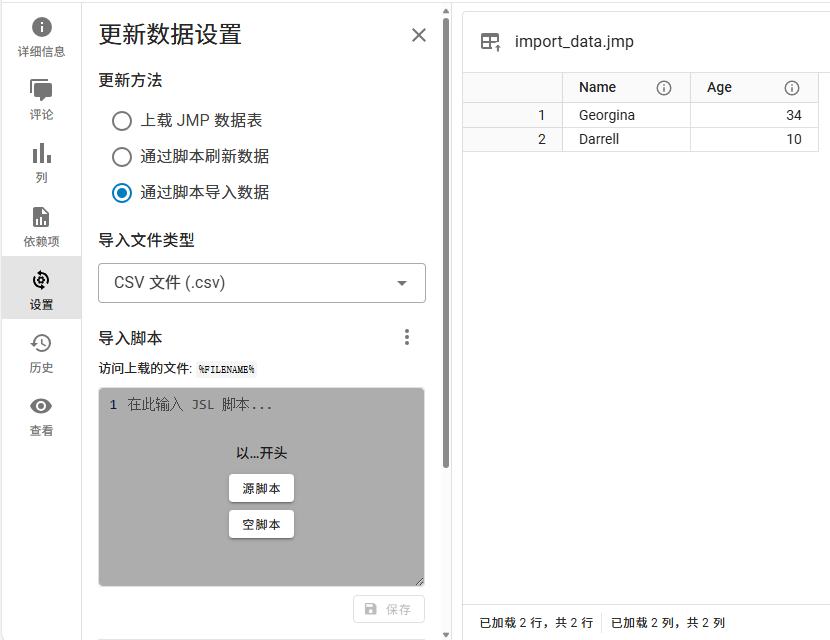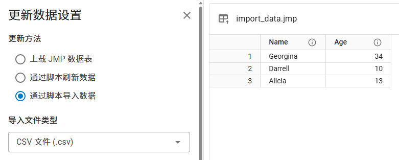 注意:仅当您选择刷新或通过脚本导入数据选项时才显示该选项。
