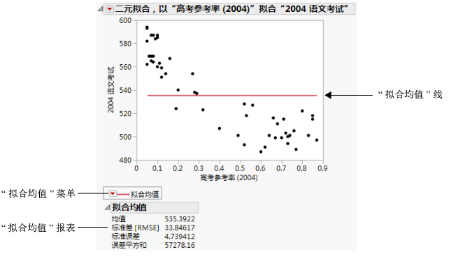 响应变量的均值。您可以先拟合均值,然后将均值线用作其他拟合(如直线、置信曲线、多项式曲线等)的参考。