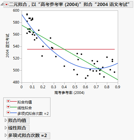 图 5.8显示了一个示例,其中将线性拟合与均值线和二次多项式拟合进行了比较。