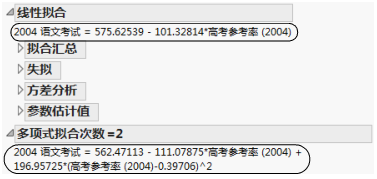 图 5.13 线性拟合和多项式拟合的“参数估计值”报表的示例