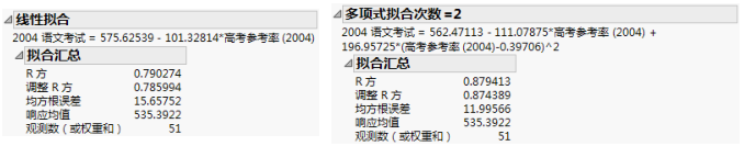 图 5.10 线性拟合和多项式拟合的“拟合汇总”报表