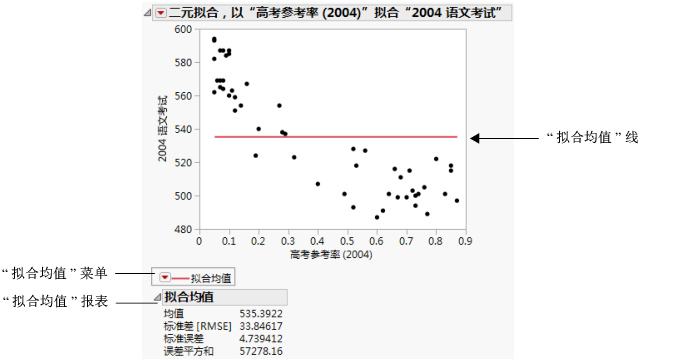 向散点图添加一条水平线,用来表示 Y 响应变量的均值。请参见