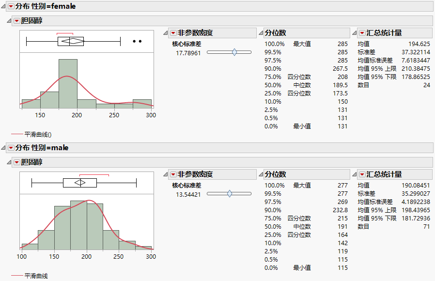 这将为“依据”变量性别的每个水平(female 和 male)生成单独的分析。