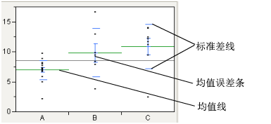 选项时,显示均值误差条和标准差线。请参见