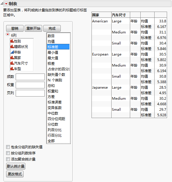 图 9.16 已添加到表的“年龄”、“均值”和“标准差”
